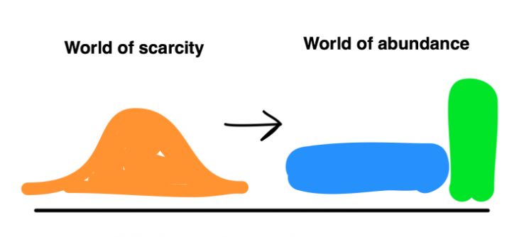 I found Alex Danco's recent post about the death of normal distributions to be prescient (despite some criticism of the lack of data underlying the graphs). I agree that we're moving away from a world of normal distributions in demand curves and towards a winner-take-all model. The "long tail" theory of digitization has been mostly proven false (with a few notable exception areas like keyword search demand and social network connections).