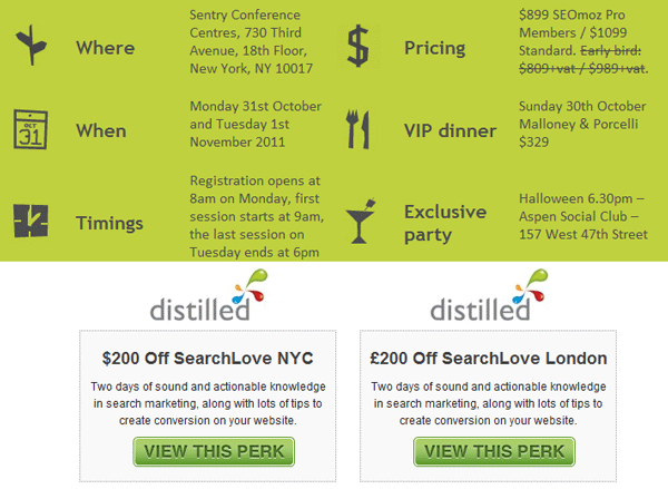 As in years past, Distilled's generously given PRO members a discount of $200 off the regular price (and if your organization would like to purchase multiple tickets, the discount can apply for them as well).