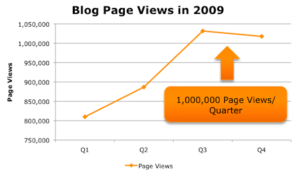We've come a long way in 2009 - growing traffic to the site as a whole and to the blog. Revenue was also up over 250%, so it's not just additional visits or visitors - conversions have also been improving.
