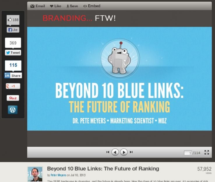 Pages hosted on UGC sites like Youtube, Slideshare, Pinterest and Scribd (there are a lot more, actually) obviously have better search-ranking power, especially for long-tail keywords.