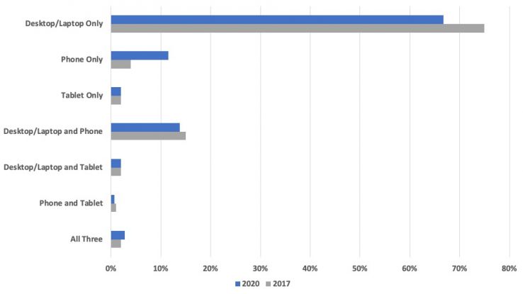 While desktop and laptop computers remain the most common way to consume blog content, mobile phone use saw an increase of nearly 10 percentage points. Mobile phones have only improved in the last three years, and it's no secret that we're using them more often for actions we'd normally take on a computer. As we move toward blog CMS improvements in 2021, mobile-friendliness will be a priority.