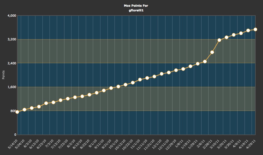 A good way to do this is to let the user get a sense of his progress. An effective way to do this is by letting the user compare current performance to past performance. This practice is being applied on Casey's mozpoints.com – a microsite that collects historical data on the thumbs up / thumbs down received on SEOmoz.