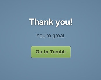 Don’t have a fancy mascot like Mailchimp? Don’t worry. You can just do like Tumblr: say that your user is great! It’s simple, but it works.