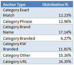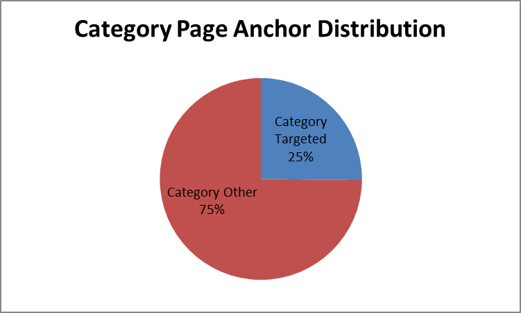 If we take a more in-depth look at category pages, we find some variance from the collective distribution above. The data shows that only 25% of links to category pages are targeted - people are less likely to link with good keywords to your category pages.