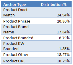 Looking at the distribution of anchors for product pages, we find that there are more links with exact match and phrase match links to product pages than to category pages. Exact match links jumped up about 7% and phrase match jumped up about 4%.