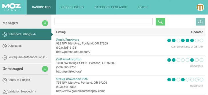 The original single-location lookup functionality from GetListed is still available at moz.rainyclouds.online/local/search—and you can also access these Listing Details from your Moz Local dashboard. As part of the Moz Local changeover, we've upgraded it with a much snazzier results page and a quicker visual indication of how a business is doing and where you should focus your efforts.