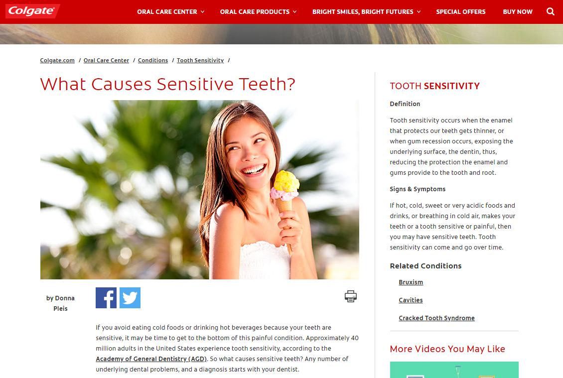 One thing to note, that is likely helping this page rank is the clear definition of “tooth sensitivity” and signs and symptoms listed on the sidebar: