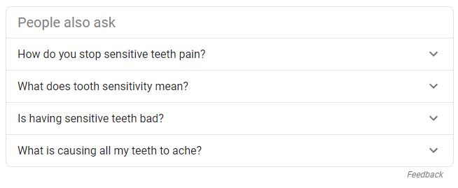 So, one optimization Quip could make to the page could be to change some of these headers to include “sensitive teeth” (also, these are all H3s, and the page has no H2s, which isn’t optimal). Quip could draw inspiration from the questions that Google lists in the “People also ask” section of the SERP: