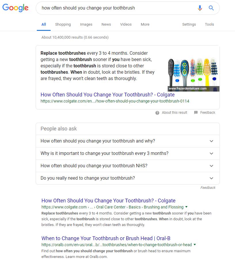 For example, here are the first page results for [how often should you change your toothbrush]:
