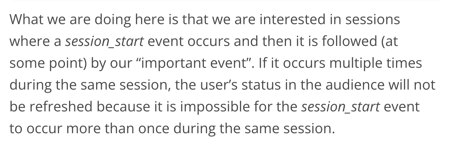 You create a custom audience based on a sequence that begins with “session_start”