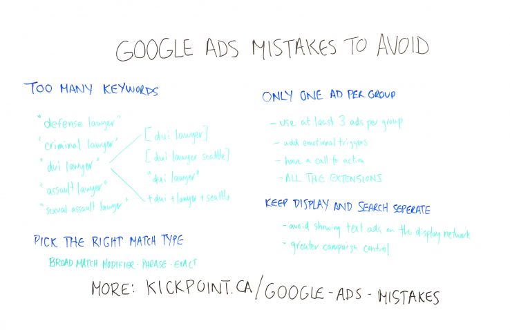 One of the things we try to do is help them run better Ads campaigns. Here I have tips on things that we see all the time, when we start working with a new Ads account, that we end up fixing, and hopefully I can pass this on to you so you can fix it before you have to call an agency to come and fix it for you. One of the things is this is actually a much longer piece than what I can present on this whiteboard. There's only so much room.