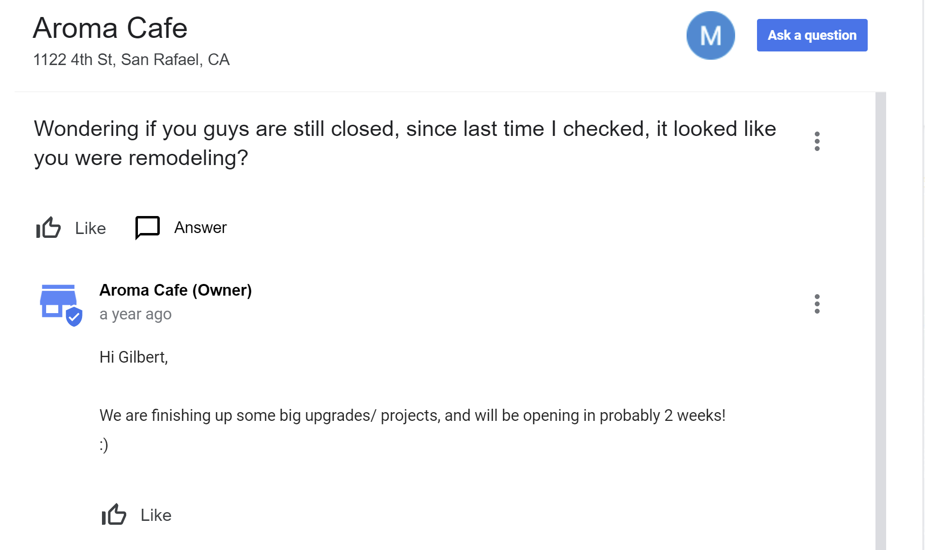 Estimate the percentage of questions that have received a direct response from the business owner, as shown in the above screenshot. The owner with the highest percentage of responses wins, because the alternative is ignoring customer service opportunities and leaving a customer to the vagaries of receiving public responses of uncertain quality, or no response at all.