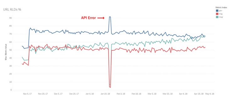 Once again, doing this at scale was not possible because one API is cost-prohibitive for top link sorts and another was extremely slow for large sites. We hope to run a set of live-link metrics independently from our daily metrics collection in the next few months.