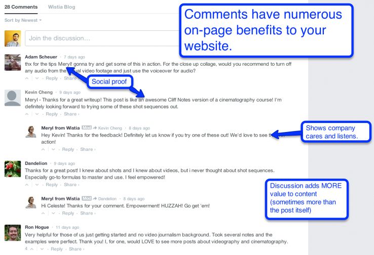 Let's walk through one example: repeat traffic. How does a comment create a higher likelihood of repeat visits?