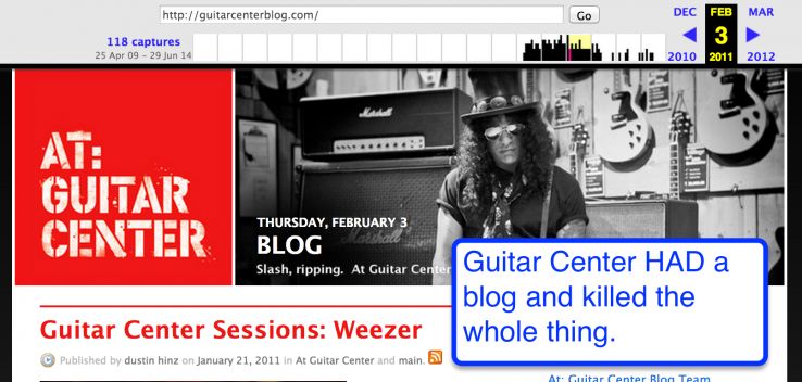 NO one would look at this frankencar and call it a success. Or say "yeah, you should make more just like that!" It borders on absurdity. But when we see company blogs with 50 posts and barely any comments, we don't notice anything wrong.