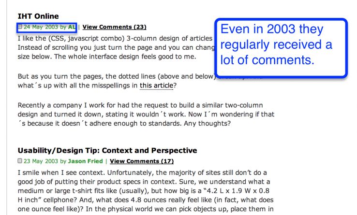 Lots of people who comment on my company blog are colleagues or friends. Here is a personal example;