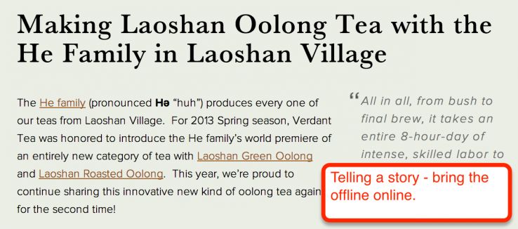 Another superb example of bringing an offline story to online is Verdant Tea;