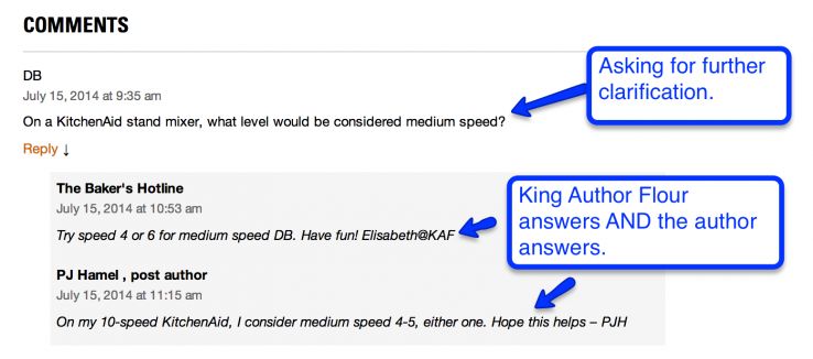 Here's King Authur Flour again. Someone asked a question and TWO people from the company answered;