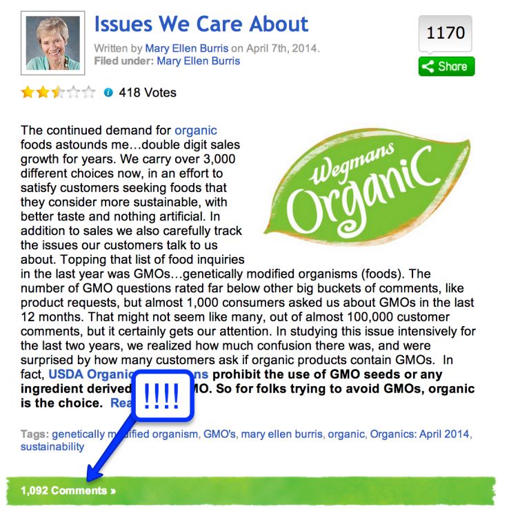 Wegman's has 1,857 comments across 50 posts. In fact, the first site is still in the chart. It's just so small, you can't even see it.