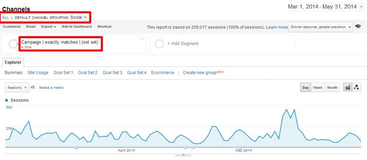 It's never possible to track every public or private recommendation, but there are two main ways that customer advocacy can be measured in Google Analytics: social referrals and social interactions. Social referrals may be polluted as a customer loyalty metric by existing campaigns, but these can be segmented out if properly tracked, leaving the social acquisition channel measuring only organic referrals.