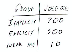2. Categorize your keywords as implicit, explicit, or near me and log their search volumes