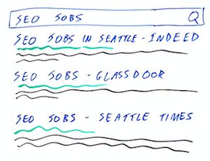 In this case, I'm looking at the SERP for "SEO jobs." This is imaginary. The rankings don't really look like this. But we've got SEO jobs in Seattle from Indeed. That's an example of a local page, because this is a national business with a location-specific page. Then we've got SEO jobs Glassdoor. That's a national page, because in this case they're not putting anything on this page that makes it location specific.