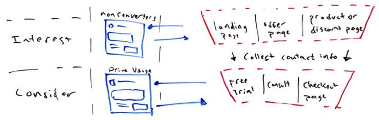 Now I'm going to start actually not at the top. I'm going to run you through the whole thing, but I'm going to start here with interest, because this is where most people start. They build a landing page, a squeeze page that says, "Hey, opt in for our free e-book," and they just start promoting it. They push it to fans. They push it to audiences that they think are interested in it. Unless you're a huge brand that has all of these touchpoints and awareness taken care of, it's very tough because people don't know who you are and they're not just going to start giving you their information and start buying just because you put up a nice landing page.