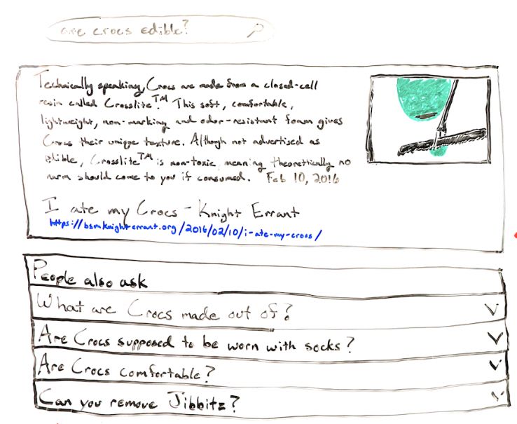 If you were to do a search for "are crocs edible," you would see a featured snippet like this: