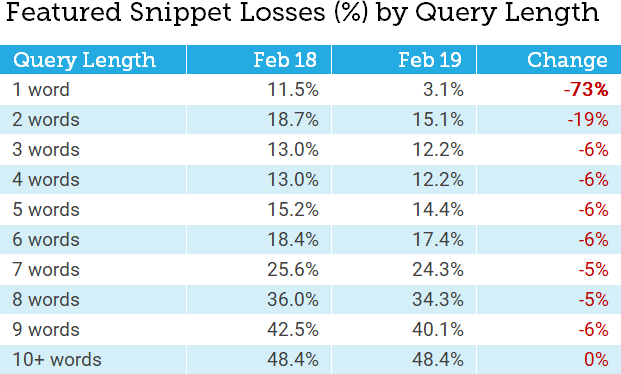 While the 40% drop in Featured Snippets in MozCast appears to be real, the impact was primarily on shorter, more competitive terms and specific industry categories. For those in YMYL categories, it certainly makes sense to evaluate the impact on your rankings and search traffic.