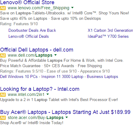 Second, many new right-hand elements have popped up in the last couple of years, including Knowledge Panels and paid shopping blocks (PLAs). These entities push right-hand column ads down, sometimes even below the fold. At the same time, Knowledge Panels have begun to integrate with niche advertising in verticals including hotels, movies, music, and even some consumer electronics and other products.