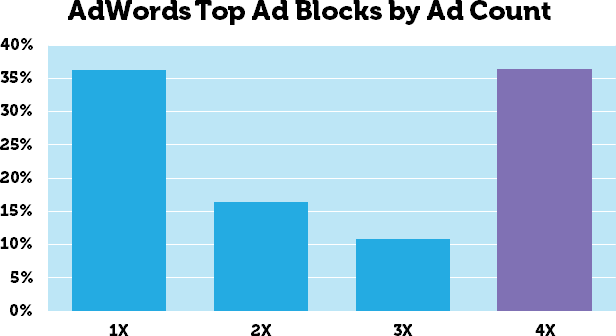 As you can see, 4-ad blocks have overtaken 2-ad and 3-ad blocks and now account for over one-third of all top ad blocks. Keep in mind that this situation is highly dynamic and will continue to change over time.