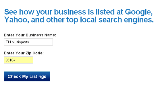 This year my trainer decided to branch off on her own and start a Seattle triathlon training company called TN Multisports. I set up her website and decided to try out Get Listed.org, David Mihm and Patrick Sexton's new site that helps local businesses add their information to major local search engines and check reviews and citations. In Pat's words: