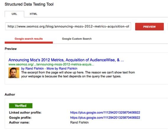 We were using the 2-link method for authorship markup, in which we link from the author's byline to his or her Moz profile with "rel=author" and then from the author's profile page to their Google+ page with "rel=me." Like I said, this was working fine until it wasn't anymore.