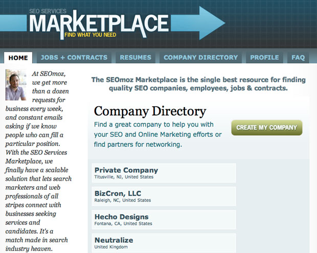 The SEOmoz Marketplace, born in early 2007, passed away peacefully in January 2012. Cause of death: Old, out-dated code, 5 year old design, manual spam maintenance and was ridden with unfixable bugs. The Marketplace lived a very full life and helped many people find their perfect SEO job, while giving companies a place to show their stuff. Our dear Marketplace was loved by all and spammed by many.