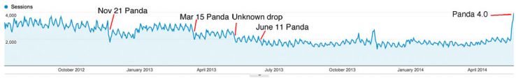 Every now and then, instead of just refreshing the algorithm, Google does what they call an update. When an update happens, this means that Google has changed the criteria that they use to determine what is and isn't considered high quality. On May 20, 2014, Google did a major update which they called Panda 4.0. This caused a lot of sites to see significant changes in regards to Panda: