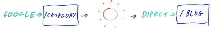 If you were to enter by Google to the category page, go on holiday and then use a bookmark or something or just type in the URL to come back, then obviously this is going to be two different sessions. You would hope that it would be one session from Google and one session from direct. That would make sense, right?