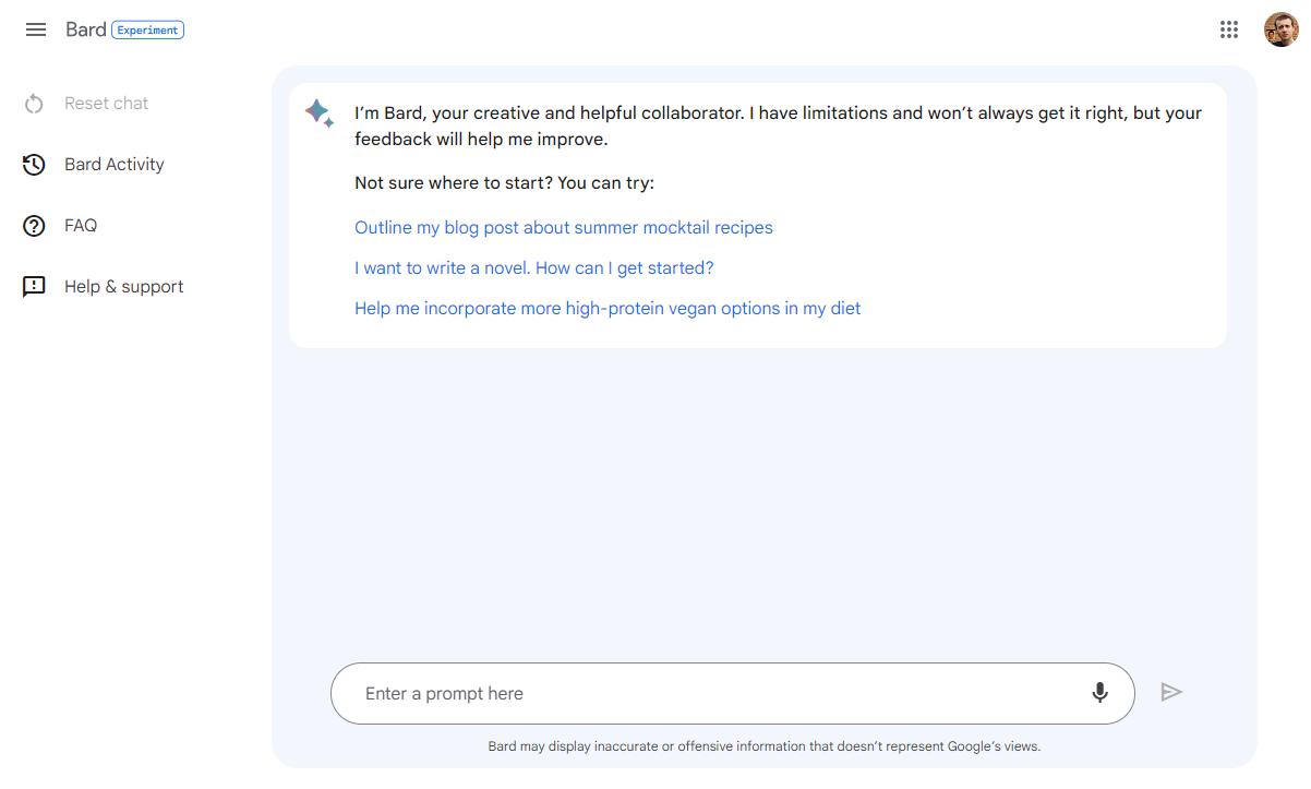 For Bard, how, if at all, will this be integrated in search? The current platform is clearly marked as an experiment, and is more like ChatGPT than it is like the mock ups Google showed us in February. Or will users be encouraged to use it as its own thing?