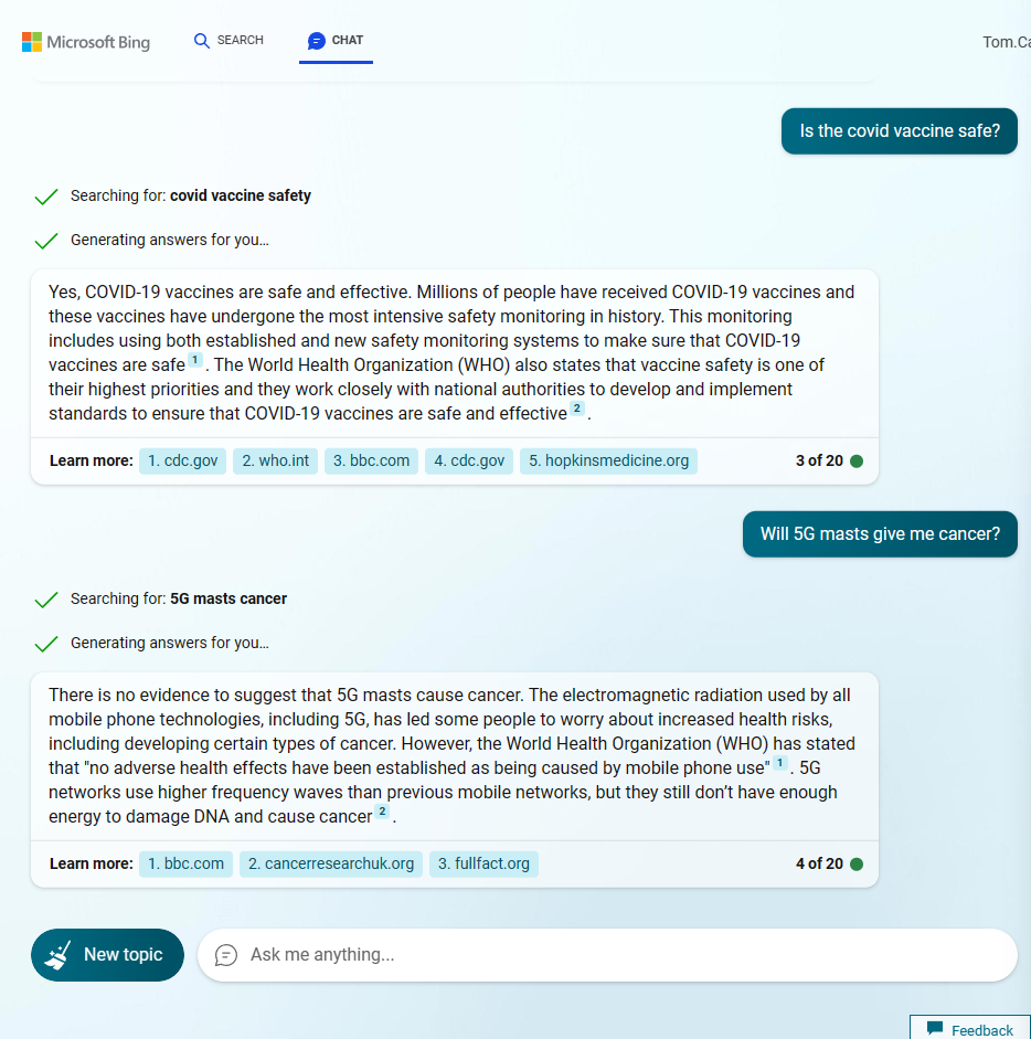 For both platforms, there are big questions about how SEOs might go about optimizing to get their clients mentioned, and indeed favorably mentioned in results - there are lots of nefarious possibilities here, and Wikipedia is probably the most obvious. Once mentioned, how does one measure this? When I clicked through to my own site from Bing’s chat tab, it just appeared like any other Bing organic traffic. Rank tracking is an interesting problem too, and you can be sure that Moz and STAT will be posting in future about how we’re handling these features — watch this space!