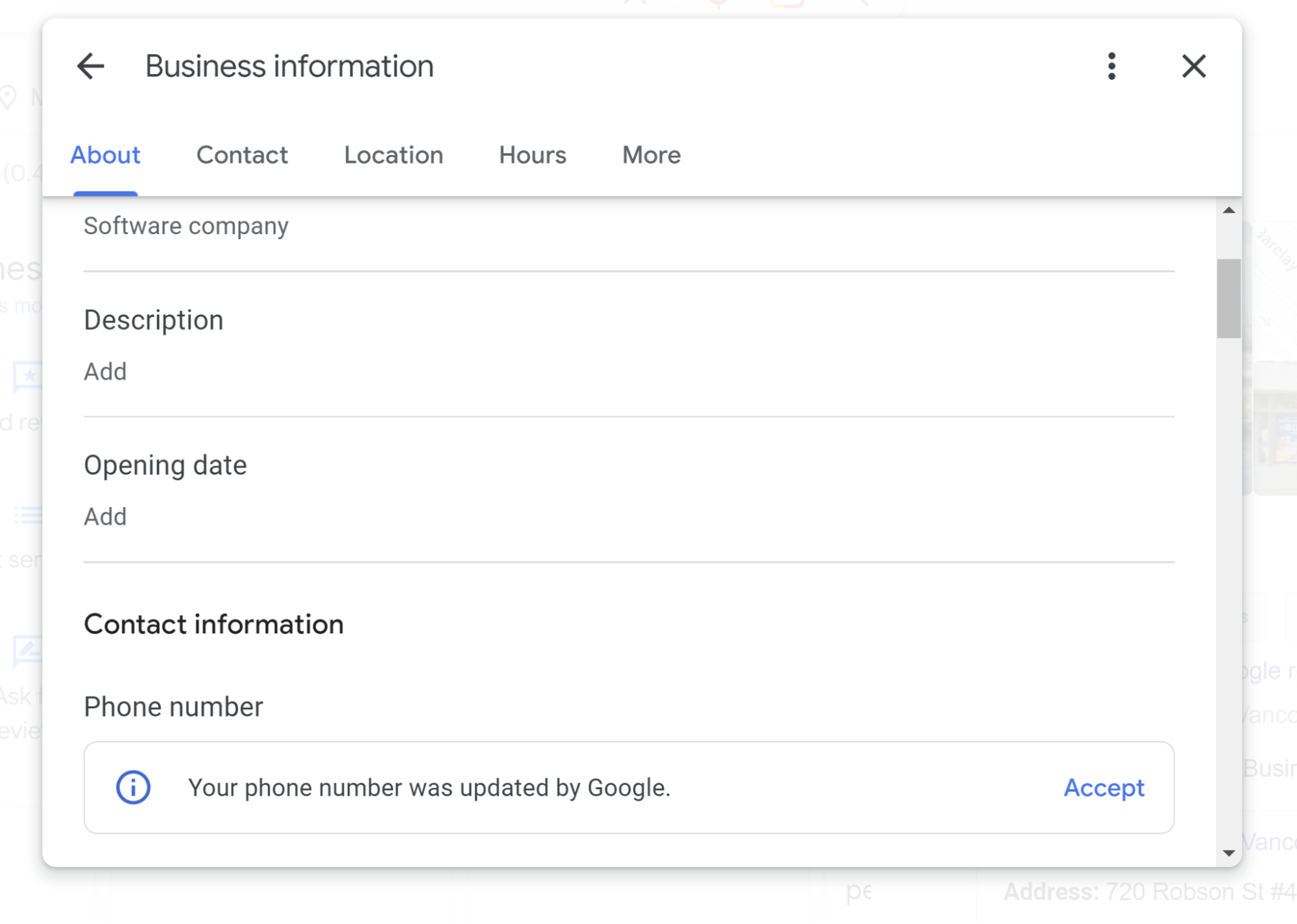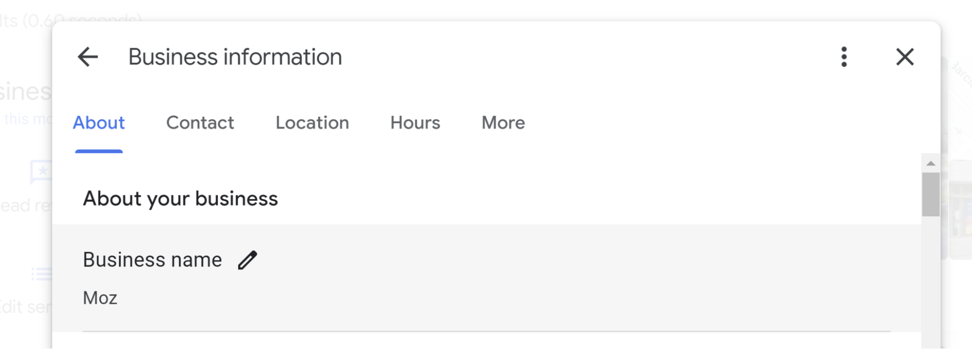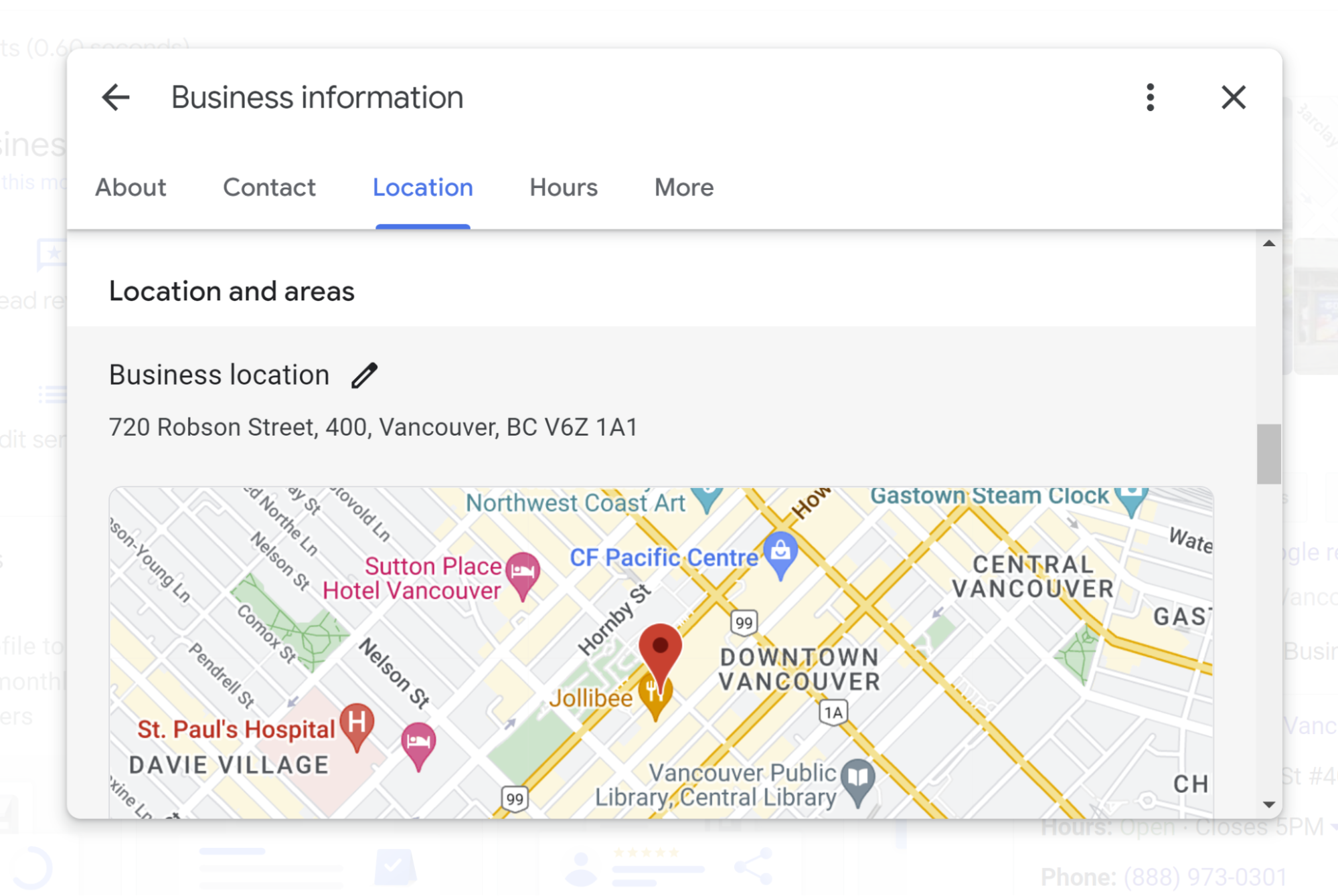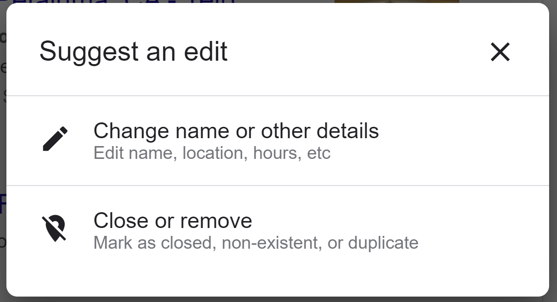 Partly — the information about your province or county relates to the physical address you provide, but the separate “located in” feature can only be edited via Google Maps. If you wish to edit this feature, find your listing on Google Maps, click the “suggest an edit” button, and look for the “located within” area of the editor: