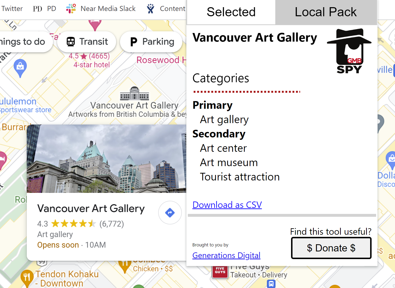 Categories may be the most important feature that you control when it comes to the search phrases you want to rank for, and categories also determine many of the fields you’ll have in your Google Business profile. Your primary category may appear on its own near the top of your GBP, but it also may appear as part of your editorial summary. In order to see all of your categories live, you have to head over to Google Maps. There, by using a Chrome extension like GMBSpy, you can see all the categories both you and your competitors are using.