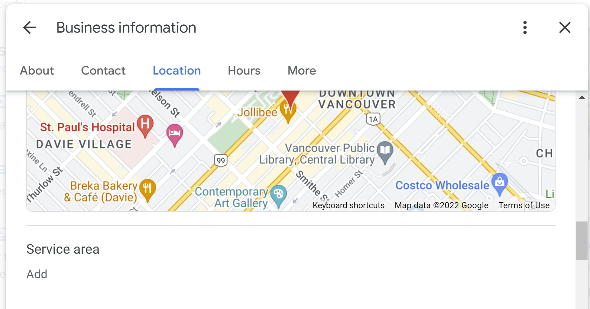 For service area businesses, the place to edit your information is also located in the “Location” tab of the NMX. You can add up to 20 locations describing your service area, but its overall boundaries shouldn’t extend beyond about 2 hours of driving time.