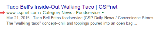 Google will occasionally replace a page's URL with a breadcrumb-style path. These URL rewrites are common on mobile SERPs and will likely become more common on desktop. These virtual paths replace the destination URL.