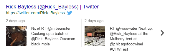 Similarly, pages about events may show rich snippets that link to specific dates and locations. These appear as individual rows below the snippet, and may show additional data.