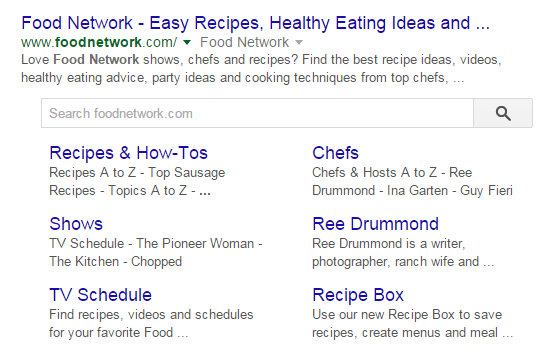 Searches with clear brand intent may display a search box that allows you to search the Google index for a single website (the equivalent of a "site:" search). This option only seems to be available in the #1 organic position and is usually accompanied by Full Sitelinks.