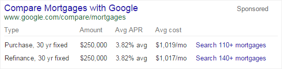 Much like they did with credit card comparison, Google is testing a sponsored mortgage comparison feature. Listings appeared to be paid, but details of the program are unknown at this time.