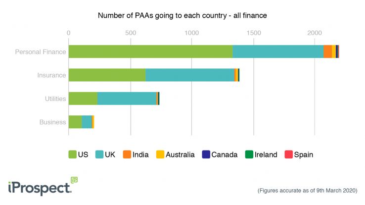 Digging into the most competitive products in the UK, personal finance, we found that a significant percentage of PAAs brought back US or Indian content in the results.