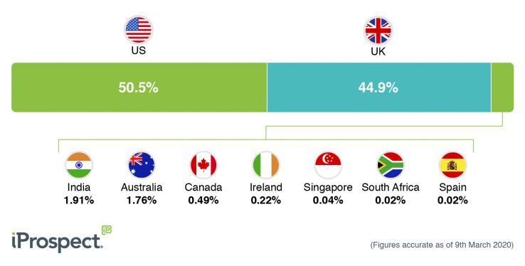 55.1% of the 4,507 available financial PAAs returned non-UK content. US content was served 50.5% of the time, while the remaining 4.6% was made up of sites from India, Australia, Canada, Ireland, South Africa, Spain, and Singapore.