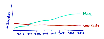 But if someone performs a search for Moz, well, guess what? I mean we can nail that sucker. We can definitely rank for that. Google is not going to take away our ability to rank for our own brand name. In fact, Google knows that, in the navigational search sense, they need to provide the website that the person is looking for front and center. So if we can create more demand for Moz than there is for SEO tools, which I think there's something like 5 or 10 times more demand already for Moz than there is tools, according to Google Trends, that's a great way to go. You can do the same thing through your content, through your social media, and through your email marketing. Even through search you can search and create demand for your brand rather than unbranded terms.