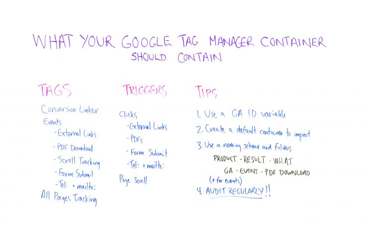 A lot of this is focused on obviously making future you very happy. Auditing will also make future you very happy. So hopefully, out of this, you can create a Google Tag Manager default container that's going to work for you. I'm going to make sure as well, when the transcript is out for this, that I'm going to include some of the links that I talked about as well as a link to some more tips on how to add in things like conversion linker and make sure I'm updating it for when this video is published.