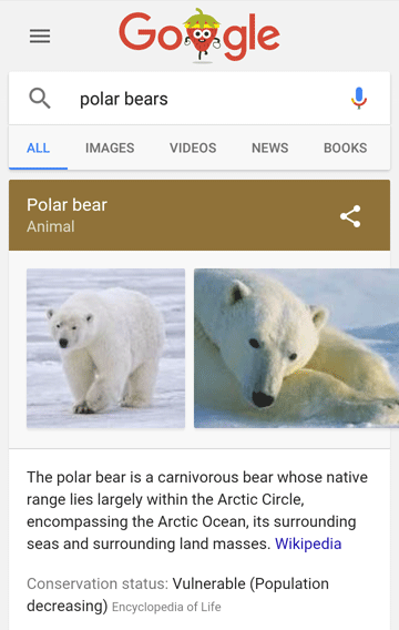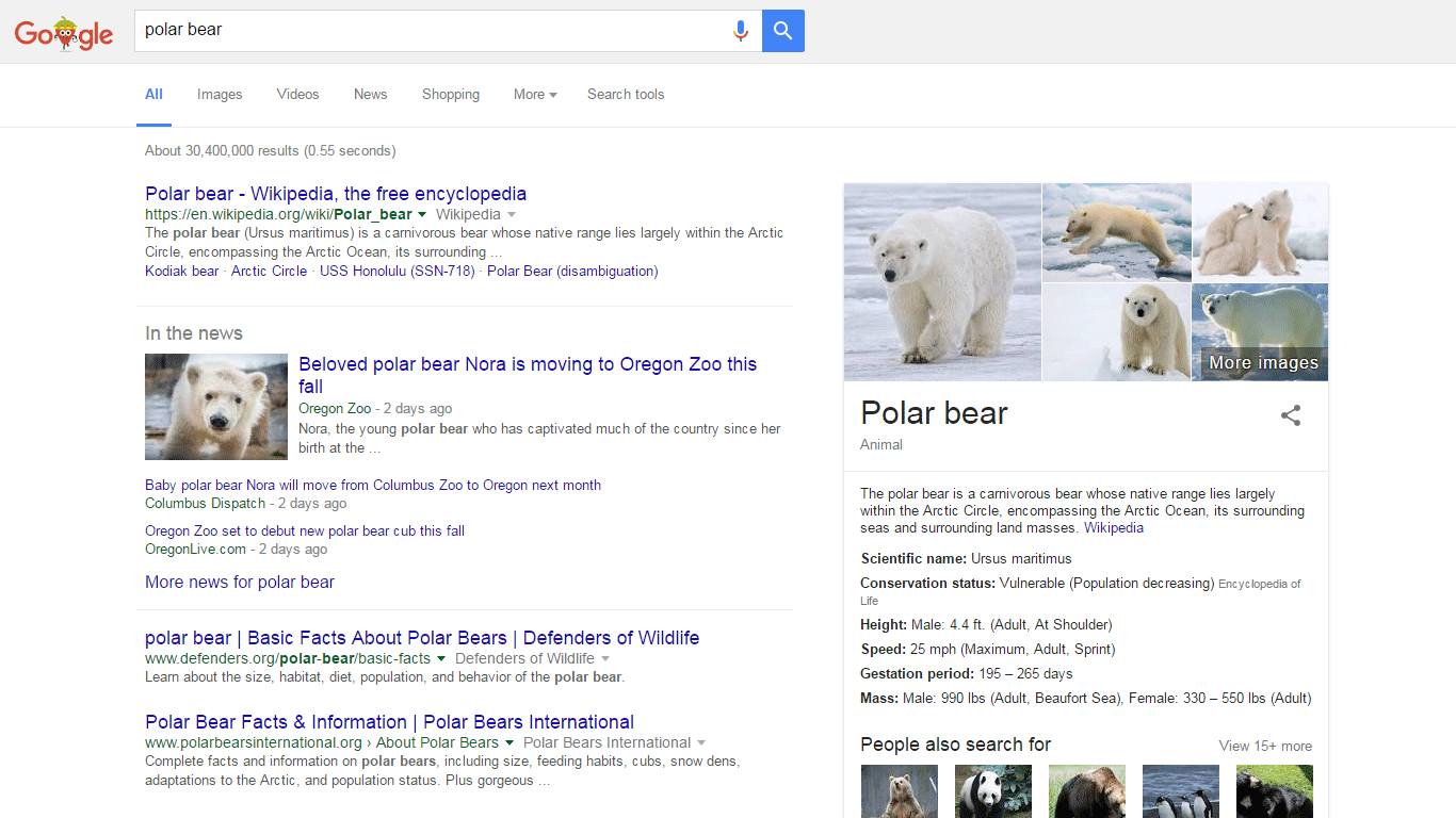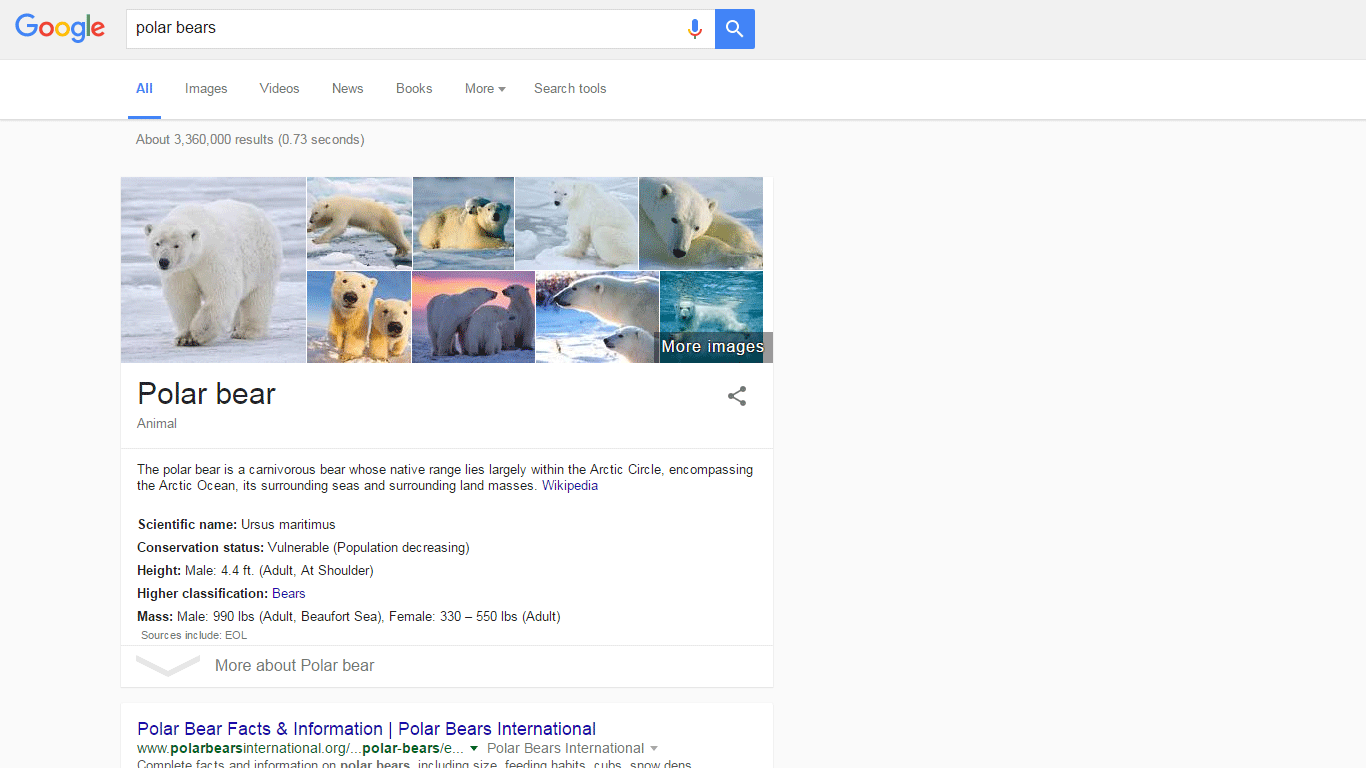 Here's a SERP screenshot for "polar bear" in Google's current desktop design:
